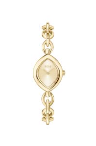 Boss Fiora on naiselik ja graatsiline käekell, mis toimib ühtlasi kui luksuslik ehe. Kella unikaalne mandlikujuline kuldne korpus on harmoonias peene lülidest koosneva käeketiga. Minimalistlik kuldne sihverplaat on puhas ja selge, tuues esile elegantsed kuldsed osutid ja ikoonilise Bossi logo. See mudel on disainitud naisele, kes otsib aksessuaari, mis sulandub sujuvalt nii õhtukleidi kui ka modernse kontoristiiliga.