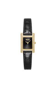 Lucy Precious käekell on tõeline elegantsi sümbol, mis on loodud naisele, kes hindab klassikalist stiili luksusliku alatooniga. Käekella silmapaistev neljakandiline kuldne korpus on kaunistatud säravate kristallidega. Must sihverplaat on minimalistlik, kandes vaid kuldseid osuteid ja BOSS logo Kellale lisab tekstuuri ja iseloomu must nahast rihm, mis on ühtaegu mugav ja ajatult stiilne.
