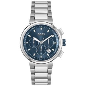 Boss One Chronograph on stiilne meeste käekell 44 mm laiuse hõbedase roostevabast terasest korpusega. Kella sinine sihverplaat on kaitstud mineraalklaasiga. Kvatrsmehhanismiga kella veekindlus on 5 ATM.