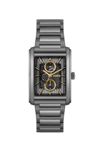 Käekella silmapaistev kandiline korpus ja integreeritud terasrihm loovad jõulise ning modernse terviku. Keeruka disainiga sihverplaat paljastab osaliselt kella sisemise mehhanismi, mida rõhutavad elegantsed kuldsed detailid ja multifunktsionaalsed näidikud. Vertikaalsete triipudega muster sihverplaadil lisab sügavust ja visuaalset põnevust, muutes kella igas seltskonnas jututeemaks. See on ideaalne valik mehele, kes soovib eristuda ja hindab detaile.