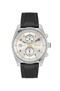 Julge ja pilkupüüdev Boss Skytraveller on sportlikuma stiiliga käekell enesekindlale meesterahvale. Roostevabast terasest korpuse ja nahast rihmaga käekell on varustatud kvartsmehhanismisga. Käekellal on stopperi funktsioon ja kuupäevanäidik. Sihverplaati katab mineraalklaas. Käekella veekindlus on 5 ATM.