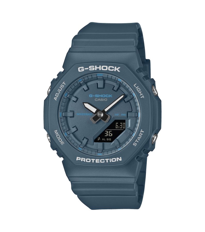 See elegantne ja kompaktne käekell kuulub G-SHOCKi populaarsesse 2100-seeria kollektsiooni, pakkudes minimalistlikku ning kaasaegset disaini. Kellal on sinine korpus ja rihm, mis on valmistatud keskkonnasõbralikust biopõhisest vaigust. Mudel on varustatud ikoonilise süsinikkiuga tugevdatud struktuuriga, mis muudab kella erakordselt vastupidavaks ja põrutuskindlaks.