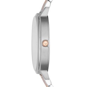 Kaunis naiste Emporio Armani käekell. Kahetoonilist käekella kaunistavad sihverplaadil asetsevad lilled. Väike 32 mm korpus peidab endas kvaliteetset Quartz mehhanismi.