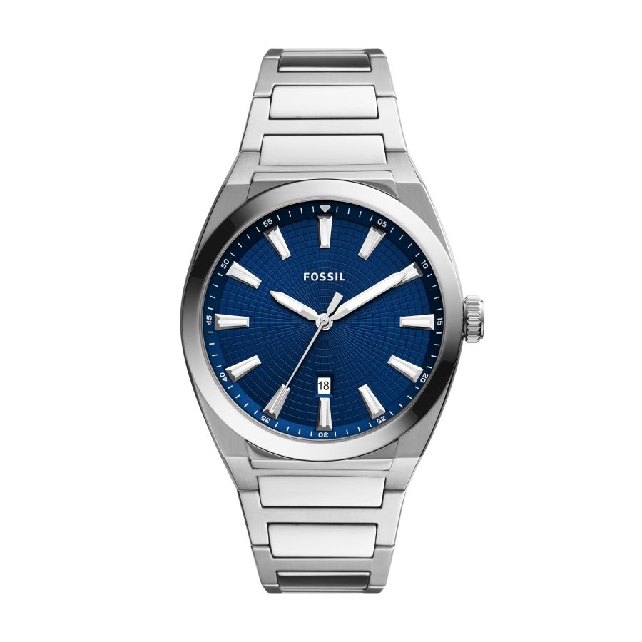 Trendika disainiga Fossil Everett meeste käekell. Roostevabast terasest korpuse ja ketiga käekellal on efektne sinine sihverplaat ja hõlpsasti loetav kuupäevanäidik. Kella seierid ja indeksid helendavad pimedas, mis muudavad kellaaja vaatamise mugavaks ka väheses valguses.