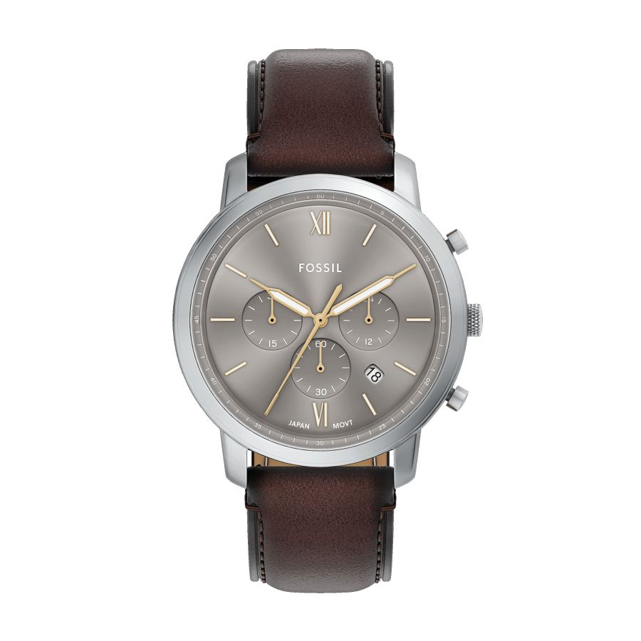 Fossil Neutra kronograafil, mis sisaldab sajandi keskpaiga arhitektuuri elemente, on hästi tasakaalustatud stiil. Kuplikujuline mineraalklaas ja täpne Jaapani kvartsmehhanism annavad sellele silmapaistvale ajanäitajale nii täpsuse kui ka ikoonilise välimuse.