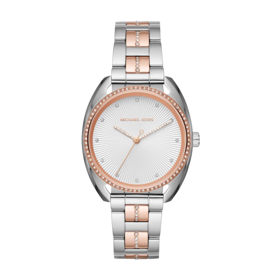 Naiselik kahetooniline elegantne käekell naistele. Kellal on 38 mm korpus, mille töötab Quartz mehhanism. Lisaks on kell kaunistatud säravate kristallidega.