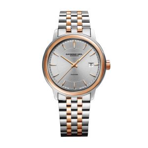 Raymond Weil tutvustas oma Maestro kollektsiooni esmakordselt 2010. aastal. Kollektsioon loodi nii meeste kui naiste eelistusi silmas pidades ja sooviga pakkuda võimalikult laia disainivalikut. See elegantne Raymond Weil Maestro meeste käekell on varustatud kõrgekvaliteedilise kaliiber RW4200 automaatmehhanismiga, mille käiguvaru on kuni 38 tundi. Šiki 40 mm korpuse sees on peene disainiga hõbedane sihverplaat, mille ilu rõhutavad roosakuldsed seierid ja indeksid ning hõlpsasti loetav kupäevanäidik.