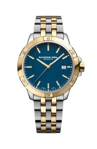 Raymond Weil Tango 8160-STP-50041 on silmapaistev ja maskuliinne meeste käekell, milles on ühendatud sportlik vastupidavus ja luksuslik viimistlus. Kella 41-millimeetrine korpus ja vastupidav kett on valmistatud roostevabast terasest ning kaunistatud kollase kulla PVD-kattega, luues elegantse kahevärvilise välimuse. Sügavsinine sihverplaat moodustab kuldsete detailidega kauni kontrasti ning on varustatud pimedas helendavate indeksite ja osutitega. Kella kaitseb peegeldusvastase kattega safiirklaas, mis tagab sihverplaadi selge loetavuse ka eredas päikesevalguses. Usaldusväärne kvartsmehhanism, kuupäevanäidik ja muljetavaldav 300-meetrine veekindlus koos keeratava kroonnupuga teevad sellest ideaalse kaaslase nii pidulikel sündmustel kui ka sukeldumisel.