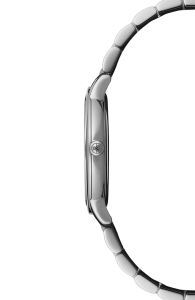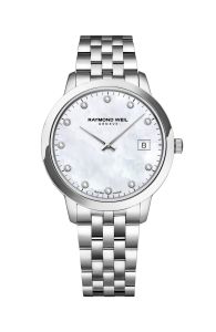 Raymond Weil Toccata 5385-ST-97081 on särav ja elegantne naiste käekell, mis sobib suurepäraselt ehteks igale randmele. Selle 34-millimeetrine roostevabast terasest korpus ja kvaliteetne lülidega kett moodustavad ajatu ja vastupidava terviku. Pilku püüab eriliselt sillerdav valge pärlmutrist sihverplaat, mida numbrite asemel kaunistavad 11 säravat teemanti. Kella kaitseb kriimustuskindel safiirklaas ning täpse ajaarvestuse tagab usaldusväärne kvartsmehhanism, millele lisab praktilisust kella kolme asukohas paiknev kuupäevanäidik. See 50-meetrise veekindlusega mudel on ideaalne valik naisele, kes hindab minimalistlikku disaini ja luksuslikke detaile.