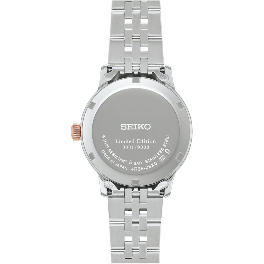 Seiko Presage Cocktail Time SRPM06 on lummav erimudel, mis on saanud inspiratsiooni Tokyo maineka Star Bari kokteilist „Sakura Aviation“. See on Cocktail Time kollektsiooni esimene käekell, millel on kasutatud naturaalsest pärlmutrist sihverplaati, mille heleroosa vertikaalne värvigradient meenutab kevadisi õitsvaid kirsiaedu. Kompaktne 34 mm korpus koos roosa kulla toonides kroonnuupu, osutite ja indeksitega rõhutab kella naiselikku elegantsi, mida täiendab stiilne kahevärviline metallrihm. Kella käitab usaldusväärne 4R35 automaatmehhanism ning erinevalt paljudest teistest seeria mudelitest on sellel väljaandel kinnine tagakaas, mis tagab puhta ja tervikliku disaini. See piiratud koguses valminud meistriteos on pakendatud spetsiaalsesse kaunisse erikarpi, muutes selle eriti väärtuslikuks kollektsionääridele ja kingituseks. Kell ühendab endas Jaapani tipptasemel käsitöömeister Hisashi Kishi kokteilikunsti ja Seiko peenmehaanika, pakkudes ajatut stiili igaks olukorraks.