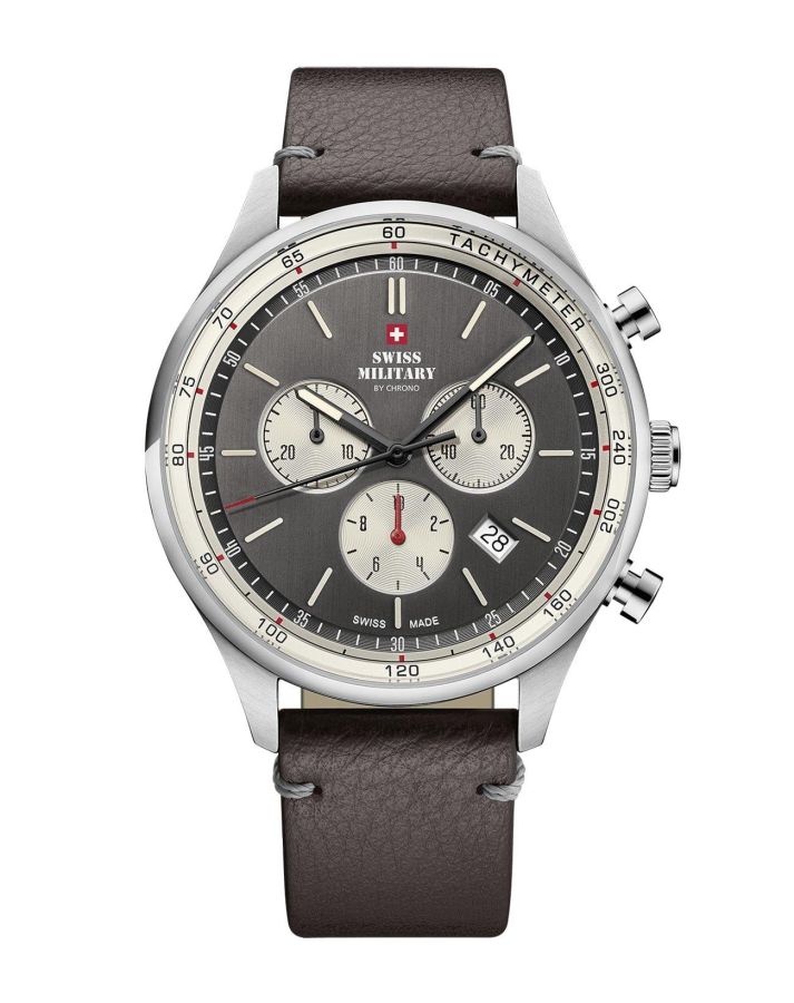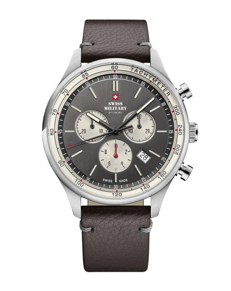 Swiss Military meeste käekell, mis on loodud trendikatele meestele. Kellal on pilkupüüdev sihverplaat tahhümeetri skaalaga ja kronograaf-loenduritega, mis on kaitstud tänu safiir kattega tugevdatud mineraalklaasile. Tänu pimedas helendavatele indeksitele ja seieritele saad näha kellaaega igas olukorras. Kella veekindlus on 10 ATM. See on kell, mis aitab rõhutada sinu individuaalsust ja laitmatut maitset.
