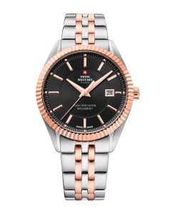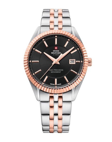 See elegantne Swiss Military by Chrono meeste käekell on iga mehe kellakogu kohustuslik liige. Šikil kahetoonilisel käekellal on efektne must sihverplaat, mida ilmestavad trendikad roosakuldsed seierid ja indeksid. Roosakulla tooni detailid on toodud ka kella korpusele, kroonnupule ning elegantsele rihmale. Käekellal on tugev safiirkattega mineraalklaas ning veekindlus 5 ATM.
