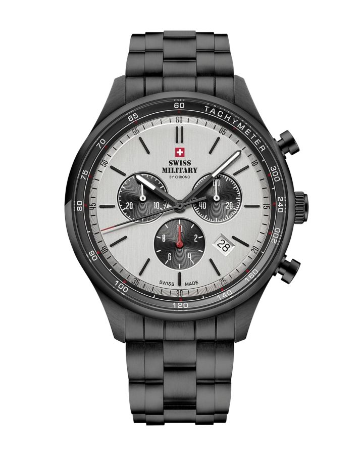 Swiss Military käekellad paistavad silma oma läbimõeldud disaini ja kvaliteedi poolest ning tähistavad peamisi Šveitsi kvaliteedile iseloomulikke omadusi - täpsus ja vastupidavus. Roostevabast terasest korpuse ja rihmaga kronograaf käekell on stiilne kaaslane igas olukorras. Käekell on varustatud kvartsmehhanismiga. Sihverplaati katab safiirklaas. Kella veekindlus on 10 ATM.