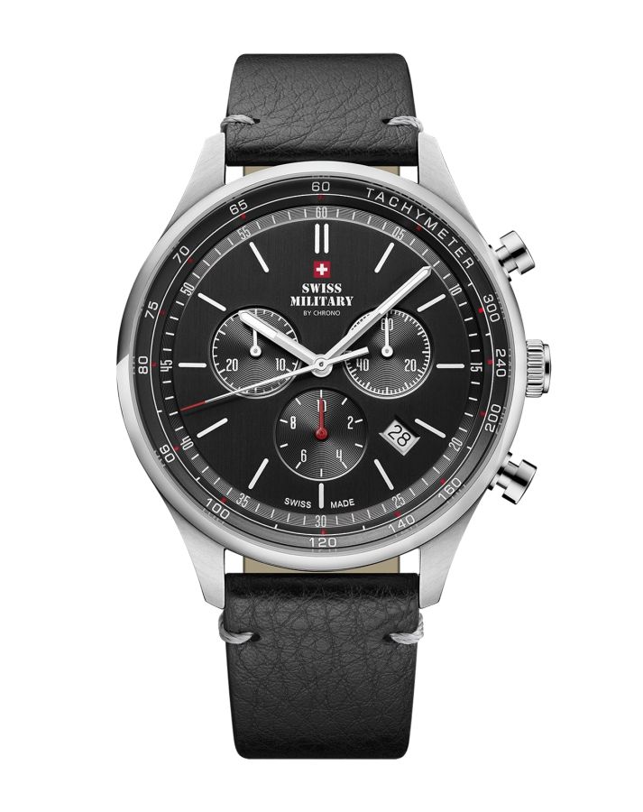 Swiss Military käekellad paistavad silma oma läbimõeldud disaini ja kvaliteedi poolest ning tähistavad peamisi Šveitsi kvaliteedile iseloomulikke omadusi - täpsus ja vastupidavus. Roostevabast terasest korpuse ja nahast rihmaga kronograaf käekell on stiilne kaaslane igas olukorras. Käekell on varustatud kvartsmehhanismiga. Sihverplaati katab safiirklaas. Kella veekindlus on 10 ATM.