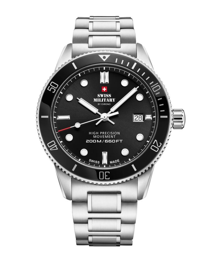 Swiss Military käekellad paistavad silma oma läbimõeldud disaini ja kvaliteedi poolest. Sportliku välimusega ajanäitajad sobivad seiklusliku vaimuga kandjale, kes hindavat aktiivsust nii äris kui eraelus. Swiss Military kellad tähistavad peamisi Šveitsi kvaliteedile iseloomulikke omadusi - täpsus ja vastupidavus. Jõuline roostevabast terasest korpuse ja ketiga käekell on stiilne kaaslane igas olukorras. Kvartsmehhanismiga käekella musta sihverplaati katab safiirkattega mineraalklaas ning kella veekindlus on 20 ATM.