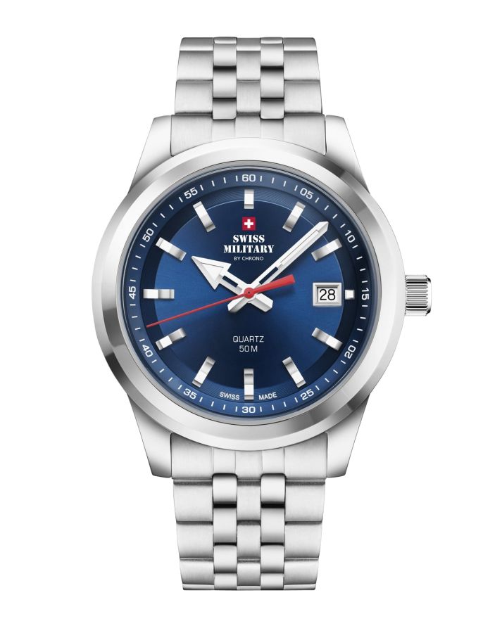 Swiss Military käekellad paistavad silma oma läbimõeldud disaini ja kvaliteedi poolest ning tähistavad peamisi Šveitsi kvaliteedile iseloomulikke omadusi - täpsus ja vastupidavus. Klassikaline roostevabast terasest korpuse ja rihmaga käekell on stiilne kaaslane igas olukorras. Kvartsemehhanismiga käekella kuupäevanäidikuga sihverplaati katab mineraalklaas, kella veekindlus on 5 ATM.