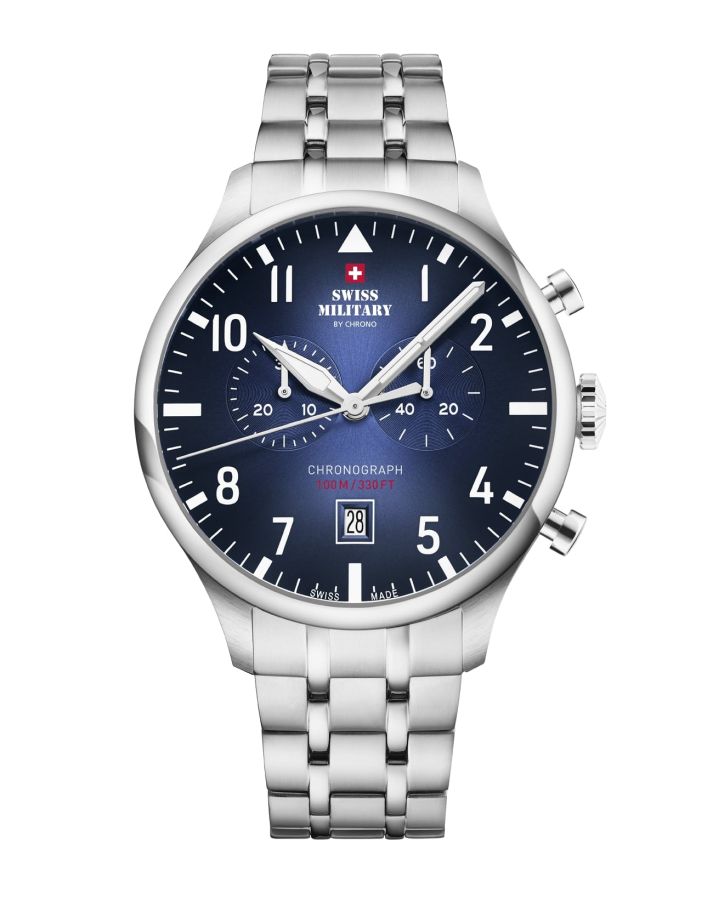 Karismaatiline Šveitsis valmistatud vintage-kronograaf avaldab austust aegadele, mil kellatehnoloogia ei suutnud mõõta kümnendiku sekundit. Seetõttu on sellel vintage-stiilis kronograafil ainult kaks kronograafi akent. Need on sisse ehitatud elegantselt sinisesse kella sihverplaati. Sihverplaati katab safiirklaas. Kvartsmehhanismiga käekell on roostevabast terasest korpuse ja rihmaga. Veekindlus 10 ATM.