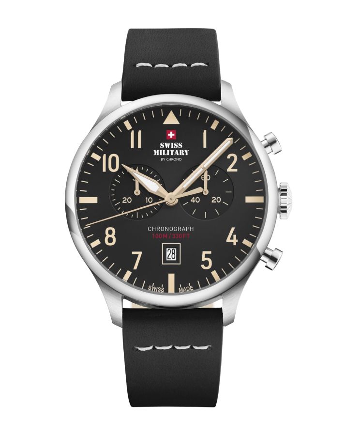Swiss Military käekellad paistavad silma oma läbimõeldud disaini ja kvaliteedi poolest ning tähistavad peamisi Šveitsi kvaliteedile iseloomulikke omadusi - täpsus ja vastupidavus. Roostevabast terasest korpusega käekellal on must kuupäevanäidikuga sihverplaat. Sihverplaati katab safiirklaas. Mugavust kandmisel lisab kergesti reguleeritav nahast kellarihm. Kvartsmehhanismiga käekella veekindlus on 10 ATM.
