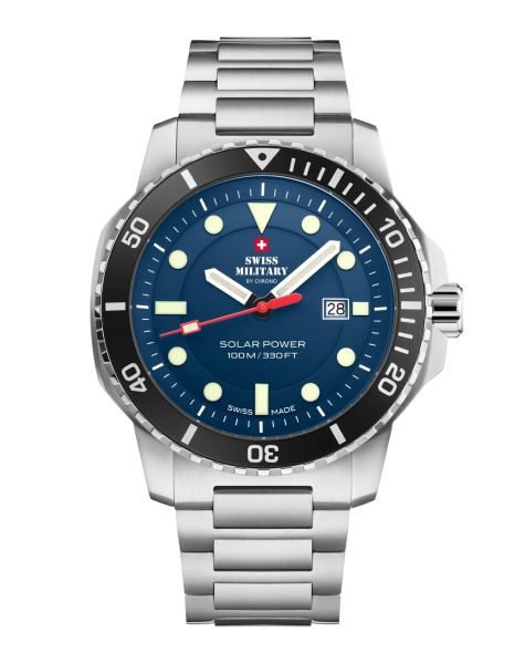 Swiss Military käekellad paistavad silma oma läbimõeldud disaini ja kvaliteedi poolest ning tähistavad peamisi Šveitsi kvaliteedile iseloomulikke omadusi - täpsus ja vastupidavus. Sportlik solar mehhanismiga käekell on vastupidava roostevabast terasest korpusega. Kuupäevanäidikuga sihverplaati katab tugev safiirklaas. Osutid ja indeksid on pimedas helendavad. Käekella veekindlus 10 ATM.
