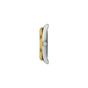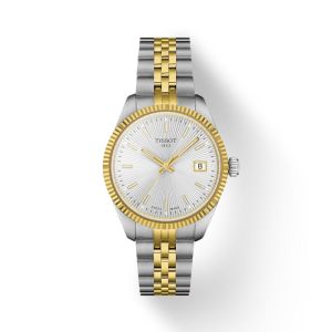 See Tissot Ballade kollektsiooni kuuluv naistekell on loodud tähistama erilisi hetki, ühendades endas klassikalise ilu ja Šveitsi täpsuse. Kella 34 mm korpus ja käekett on valmistatud vastupidavast roostevabast terasest, millele lisavad luksuslikkust kollase kulla PVD-kattega detailid. Pilku püüab eriliselt viimistletud sooneline lunett ning hõbedane sihverplaat, mida kaunistab sügavust lisav päikesekiiri meenutav guilloché-muster. Sihverplaati ja kella kolme suunas asuvat kuupäevanäidikut kaitseb peegeldusvastase kattega safiirklaas, mis tagab suurepärase loetavuse igas valguses. Kella hoiab töös kindel kvartsmehhanism, mis on varustatud patarei tühjenemise indikaatoriga (EOL), ning tänu 10-baarisele (100 m) veekindlusele sobib see elegantne aksessuaar ka aktiivseks igapäevaseks kasutamiseks.