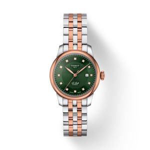 Tissot Le Locle on naiselikkuse ja klassikalise kellassepakunsti sümbol, mis on saanud nime Tissot ajaloolise kodulinna järgi Šveitsi mägedes. Kompaktne 29 mm korpus on valmistatud poleeritud roostevabast terasest, pakkudes randmel graatsilist ja peent välimust. Kellal on automaatmehhanism käiguvaruga kuni 48 tundi. Tõeliseks pärliks on tumeroheline sihverplaat, mida kaunistavad 12 säravat teemanti kokku 0,05 ct, Top Wesselton, VS-SI. Kella täiendab kahetooniline roostevabast terasest rihm.