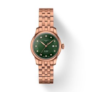 Tissot Le Locle on naiselikkuse ja klassikalise kellassepakunsti sümbol, mis on saanud nime Tissot ajaloolise kodulinna järgi Šveitsi mägedes. Kompaktne 29 mm korpus on valmistatud poleeritud roostevabast terasest, pakkudes randmel graatsilist ja peent välimust. Kellal on automaatmehhanism käiguvaruga kuni 48 tundi. Tõeliseks pärliks on tumeroheline sihverplaat, mida kaunistavad 12 säravat teemanti kokku 0,05 ct, Top Wesselton, VS-SI. Kella täiendab roosa kulla toonis terasest rihm.