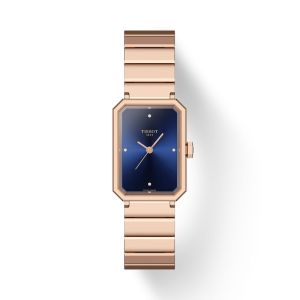 See Tissot SRV mudel on tõeline pilgupüüdja, ühendades 1920. aastate Art Deco geomeetria julge värvikombinatsiooniga. Kella kandiline korpus (21,8 x 30 mm) ja elegantne milano-stiilis käekett on valmistatud roostevabast terasest ning viimistletud sooja roosa kulla PVD-kattega. Luksuslikku raami täiendab sügavsinine sihverplaat, millele lisavad sära neli indeksina asetsevat teemanti. Kella sihverplaati kaitseb vastupidav ja kriimustuskindel safiirklaas. Usaldusväärne Šveitsi kvartsmehhanism on varustatud patarei tühjenemise indikaatoriga (EOL) ning tänu 5-baarisele veekindlusele on kell sobilik ka igapäevaseks kandmiseks, taludes hästi nii vihma kui kätepesu.