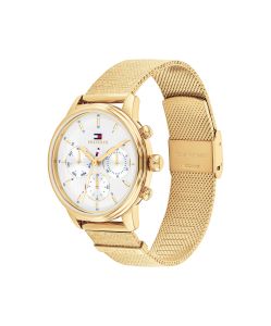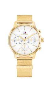 See kuldne käekell õhkab peenust ja enesekindlust, olles ideaalne aksessuaar nii pidulikeks sündmusteks kui ka igapäevaseks glamuuriks. Kella valge sihverplaat on varustatud kolme funktsionaalse näidikuga, mis kuvavad kuupäeva, nädalapäeva ja 24-tunni formaati. Erilist tähelepanu pälvib kuldne võrkrihm, mille kergelt karestatud pind püüab valgust ja istub randmel pehmelt nagu ehe. Kvaliteetne kvartsmehhanism tagab kella täpsuse ja töökindluse igas olukorras.